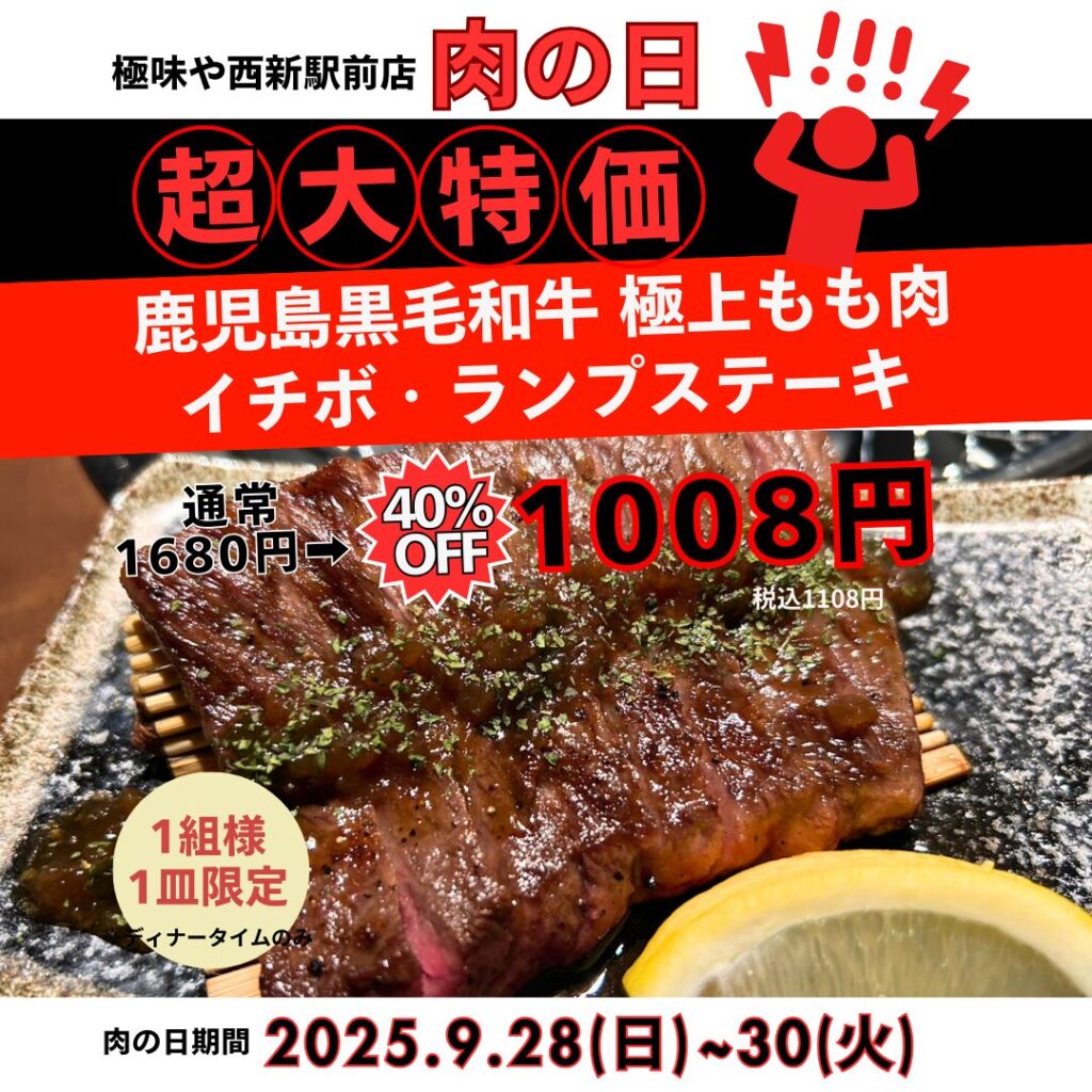 >>極味や西新駅前店9月の肉の日🥰